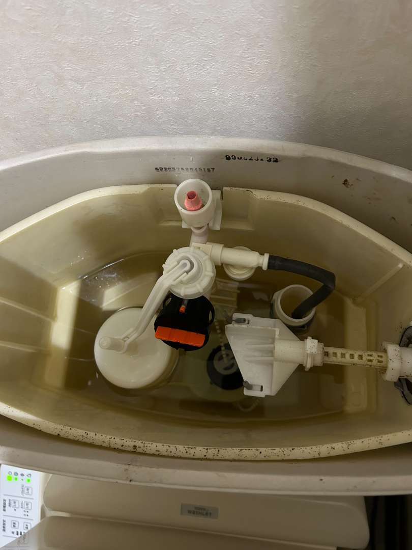 現場へ急行し点検したところ、タンク内部の部品が経年劣化により破損し、常に水が流れ続けてしまう状態でした。本来であれば部品交換による部分補修を検討いたしますが、該当の製品はすでにメーカーでの「部品廃盤」となっており、修理が不可能な状況であることが判明しました。